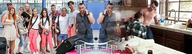 Gang of college guys break into a sorority lesbian orgy