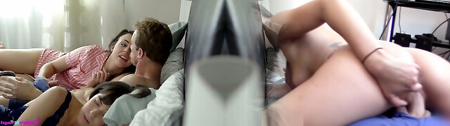 Gorgeous Abbie Cat and her trampy friend love steamy group lovemaking sessions