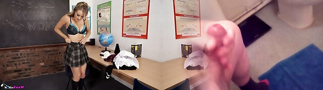 Horn-raging tutor Shelly flashes her big boobs and impressive big clit