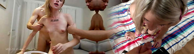 Perky tit blonde bbw loves it when two guys pound her snatch and fuck her jaws