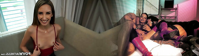 Skinny waitress Natalia Nix sucks and rides cock in POV
