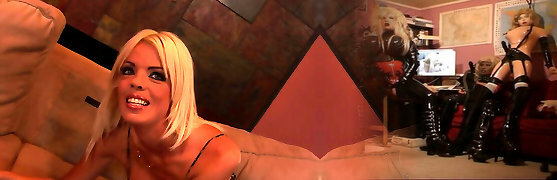 Blonde Babe with black Latex and Ballet Stilettos 01