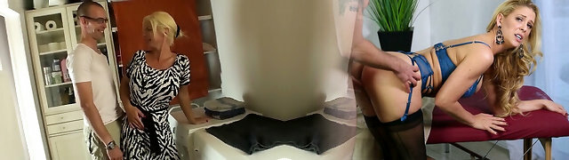 busty pierced blond german milf takes it on the sofa
