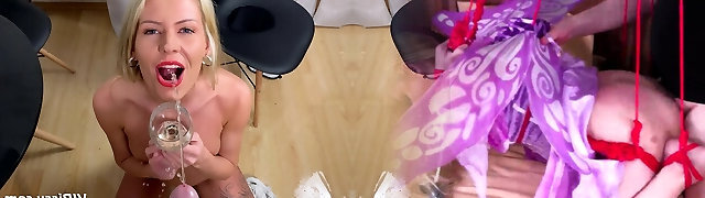 Mistress peeing and cum in her slave'_s throat - Lesbian Illusion Girls