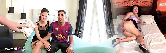 Cuckold spouse looks on as hot wife gets pounded with a big cock