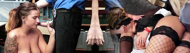 Huge-boobed shoplifter fucked by LP officer for stealing cucumber