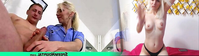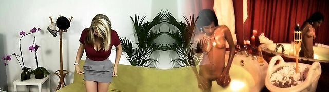 Huge jugs hottie gives the nerd a massage and a hot blowage