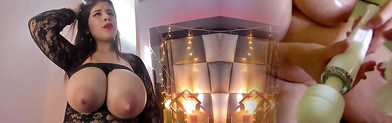 Curvy brunette chick Leila rubs a Big Black Cock between her big boobs