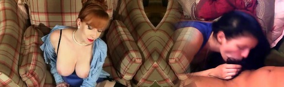 Hot chesty redhead mom Lauren Phillips blowing big dick