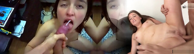 18 y.o. beauty bj's cock for the first time and smashes on camera, and after that I cum in her coochie without taking it out