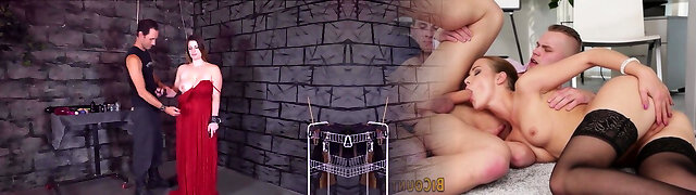 The blonde gets ass fucking with a xxl black pink cigar, and then fisting in her ass, while the caged bird madam takes her hollow and