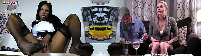 Ebony Assistant in stockings squirting on her desk
