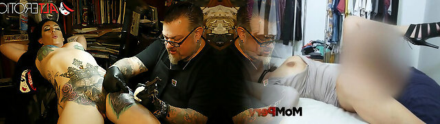 Marie Bossette fumbles herself while being tattooed