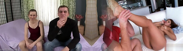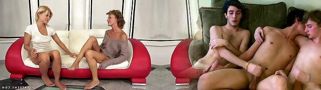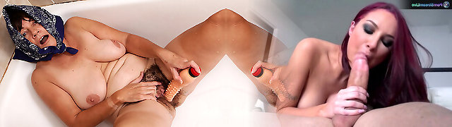 Perverted mature ugly whore Tanya watches two supersluts teasing each other