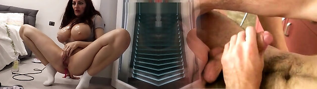 Short haired gross first-timer brunette plays with her huge oiled boobies