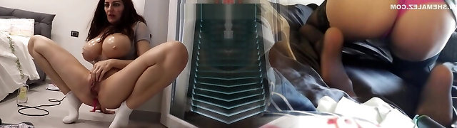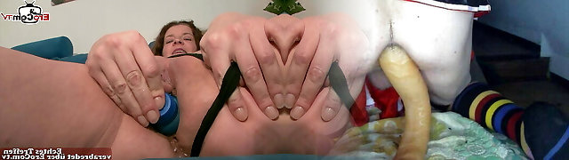 Ugly girls with small tits toy fucking in arousing lesbian pummel scene