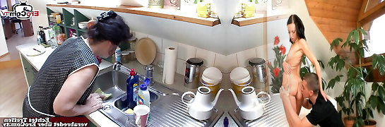 Spunk ON SKIN HEAD - German curvy amateur teen fuck in kitchen