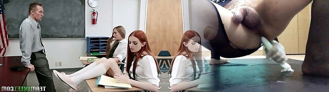 Small boobed teenage brunette with glasses likes the way her teacher is fucking her dirty brains out