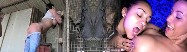 Busty latina teen shares her BF big trunk with BFFs
