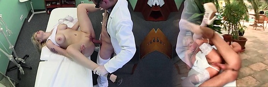 Buxomy blonde gets fucked by the doctor