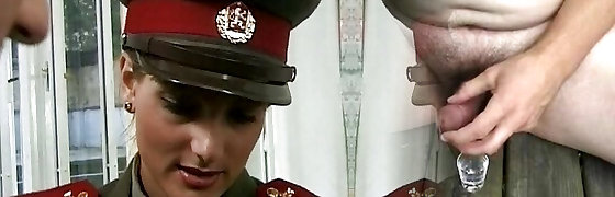 German policewoman pleasing a stiff and loaded cock
