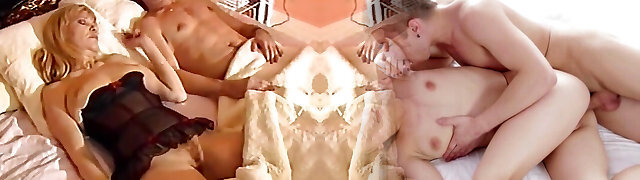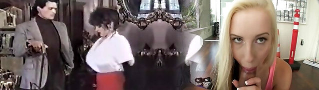 Retro porn with a horny blonde sucking and plumbing