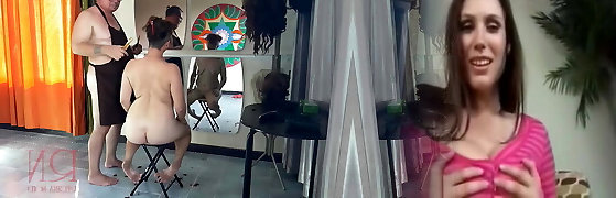 Nude barbershop. I will caress my naked pussy while the hairdresser cuts my hair. Short 13