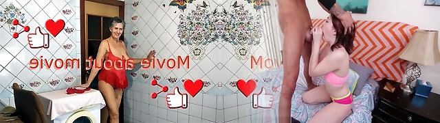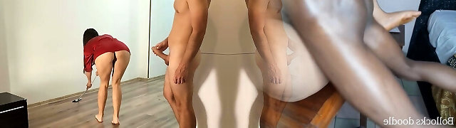 Son stagged on stepmother while she was sweeping the floor in a silk nightie