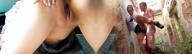 Very Risky Teenager Games Blowjob in a Public Place and Showing Tits