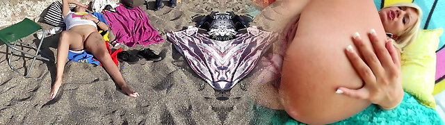 A follower caresses my vagina on the beach and I masturbate him