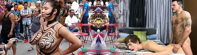 Big funbags girl public body painting