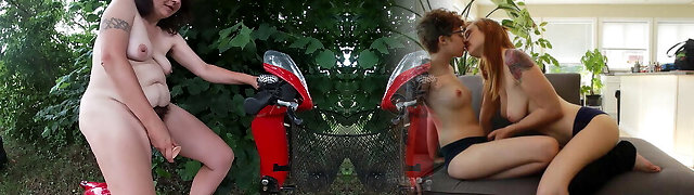Brunette Jacks on a Scooter