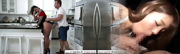 Abigail Mac nearly got caught cuckold on her spouse in the kitchen